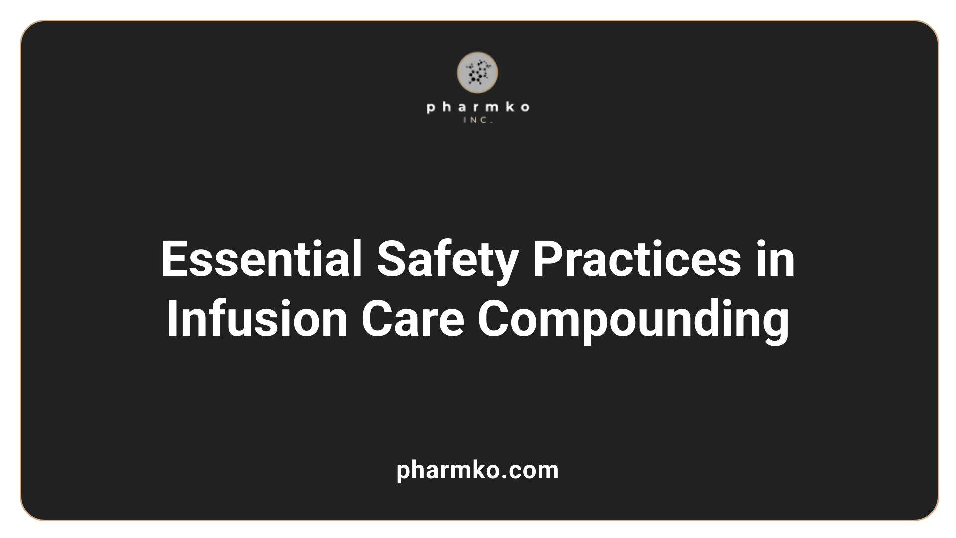 Adhering to these practices, along with ongoing staff training and compliance with USP standards and industry regulations, ensures a high level of safety in infusion care compounding.
