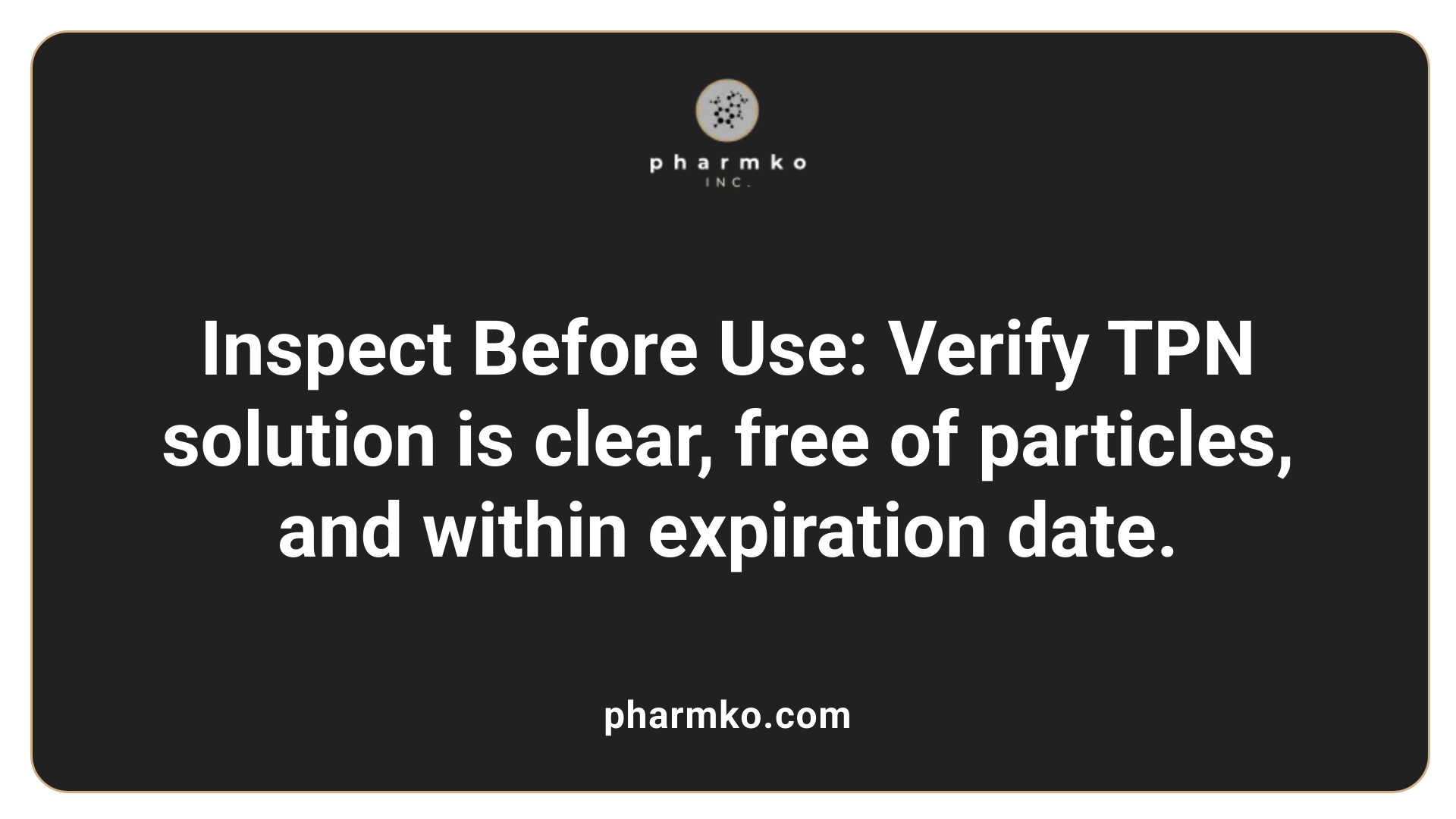 Prior to administering TPN, patients or caregivers must inspect the solution carefully. Check the bag's appearance, ensuring it is clear and free from any particles or cloudiness. Any discoloration, solid particles, or leaks indicate that the solution is compromised and should not be used.